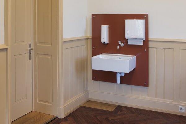 Durch das Entfernen von Schichten späterer Auffrischungen und Modernisierungen gelang es uns, die ursprüngliche Bausubstanz freizulegen. Auf dieser Basis und mit den Analysen eines Restaurators entwickelten wir - in enger Zusammenarbeit mit der Denkmalpflege - ein umfassendes Konzept für zukünftige Renovationen, dass der historischen Authentizität des Gebäudes gerecht wird. Dieses Konzept bildet einen Leitfaden für zukünftige Sanierungen und enthält detaillierte Angaben zu den Materialien, den Oberflächenstrukturen und der Beleuchtung.