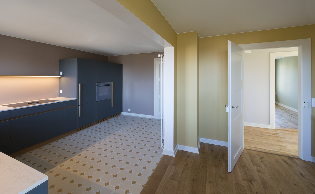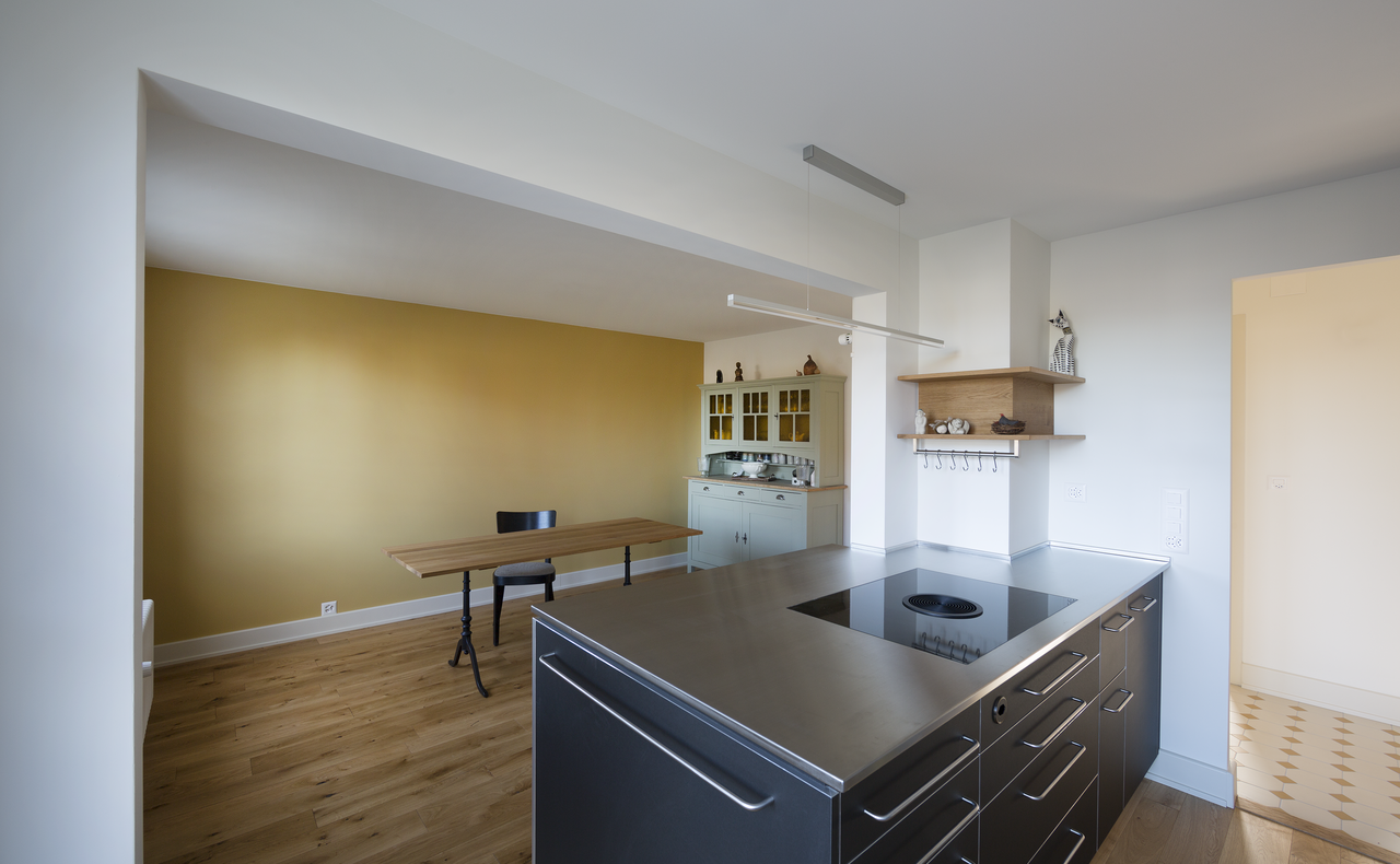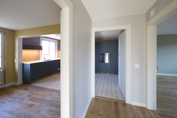 Ziel des Projektes war die behutsame Renovierung und Umgestaltung eines im Jahr 1920 erbauten Hauses, das ursprünglich zwei kleine 4-Zimmerwohnungen mit zusätzlichen Kammern im Dachstock umfasste. Durch die gezielten baulichen Eingriffe entstand ein Generationenwohnhaus, das den Wohnbedürfnissen einer jungen Familie zusammen mit ihren Eltern gerecht wird.