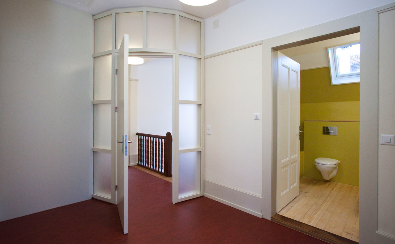 In enger Zusammenarbeit mit der Denkmalpflege des Kantons Bern, wurden die neuen Elemente sorgfältig und rückbaufähig auf das weitgehend original erhaltenen Bauwerk mit Gründerzeit-Charakter abgestimmt.